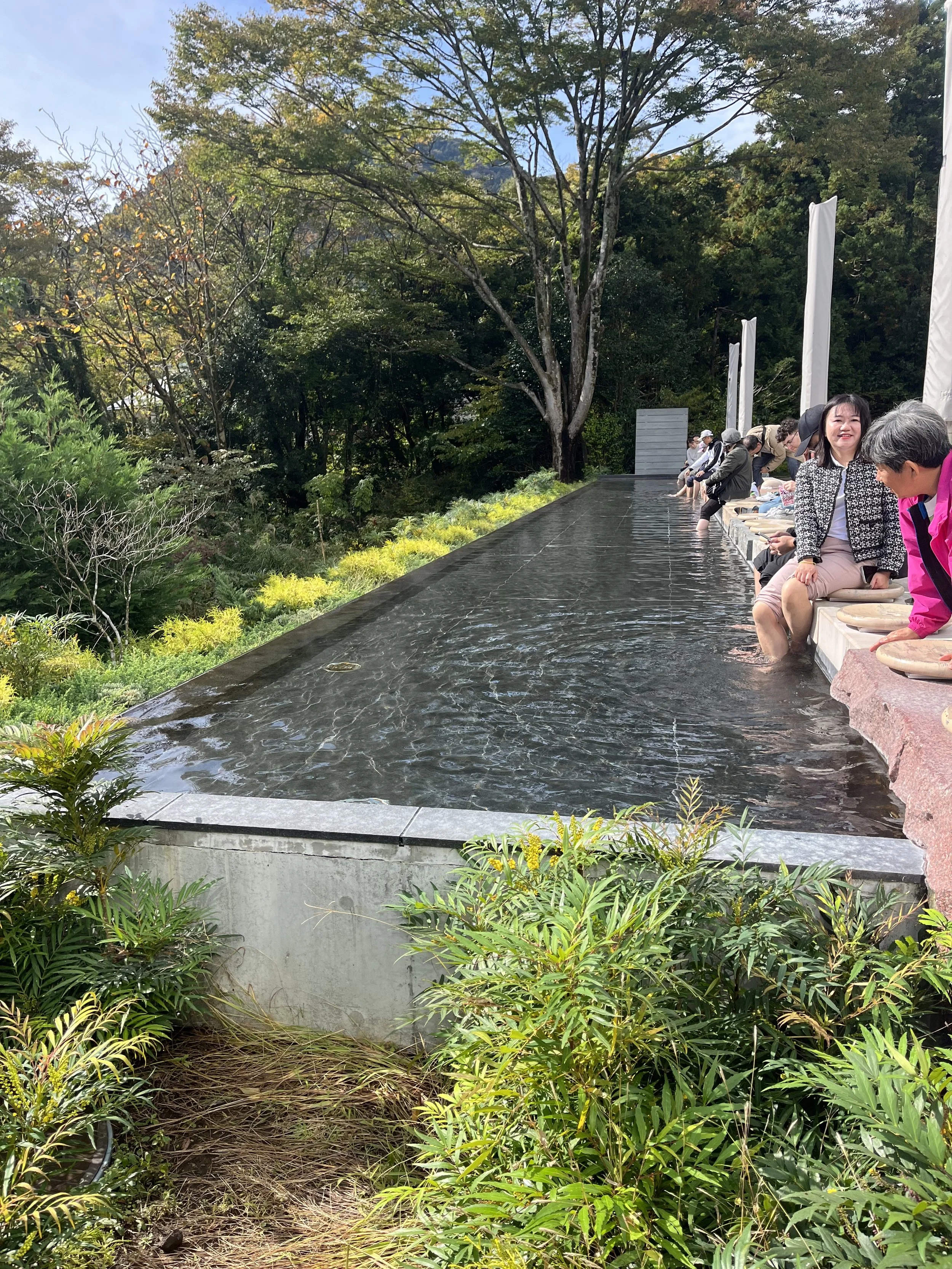 What open air art museum is not complete with a naturally fed hot spring foot bath?