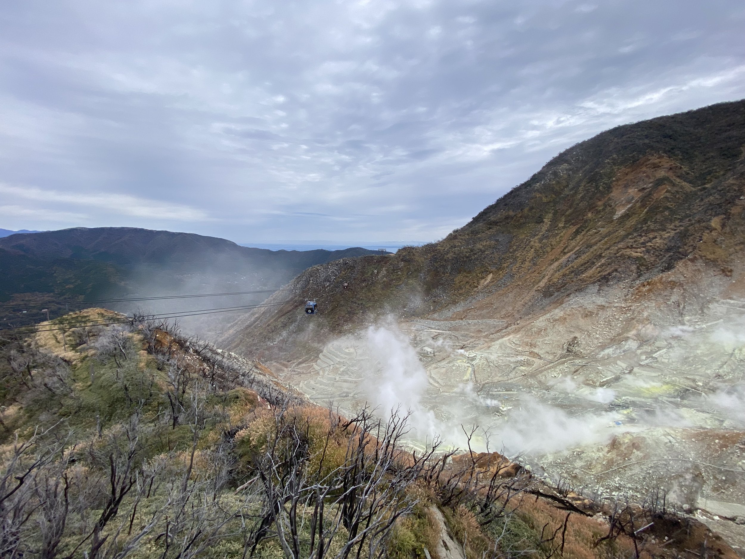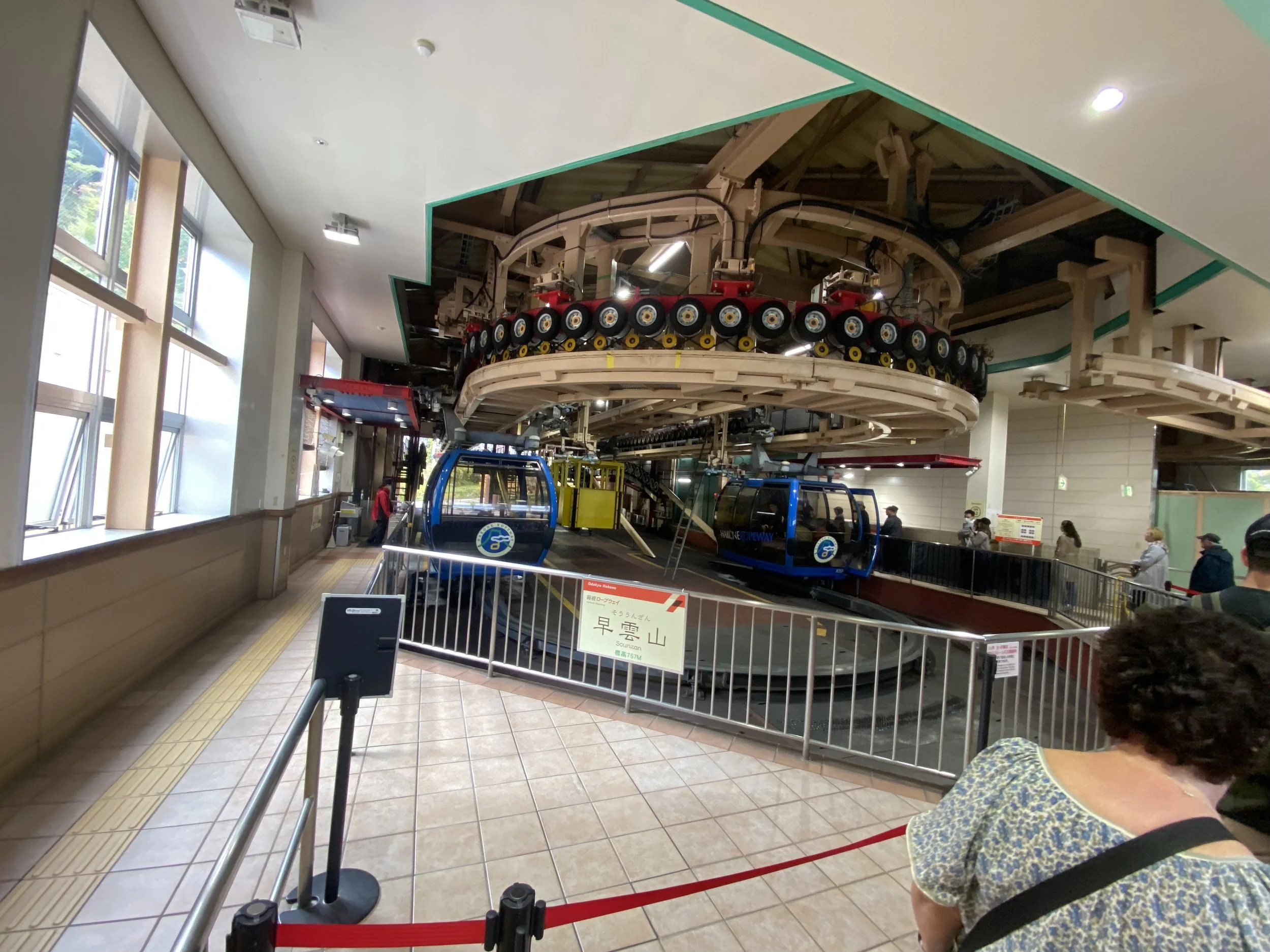The next change point was Odawara about half an hour south of Tokyo. This is as close as the super quick rail stops to the Hakone park area with the options for moving closer either being a taxi or a small, private and mainly single track railway, to the head of the cable car run at Gora. We were pleased to know that we were being picked up in a pre booked Uber and spent to next hour weaving around hairpin bends on mountain roads.
