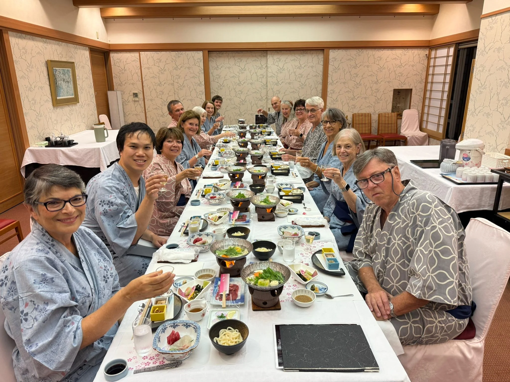 A surprisingly good day is rounded off with an included Kaiseki meal where we all dressed like locals in our dressing gowns!