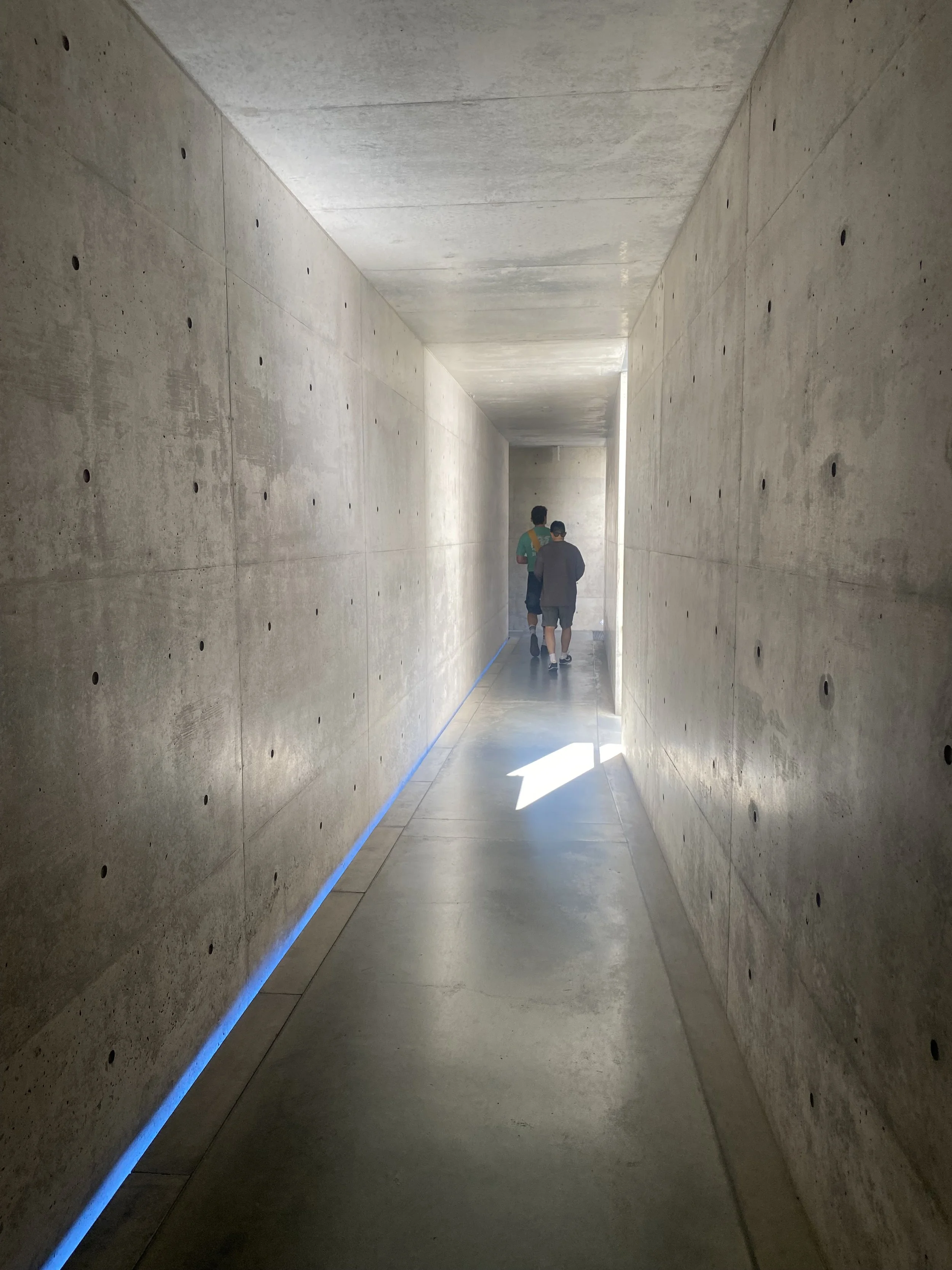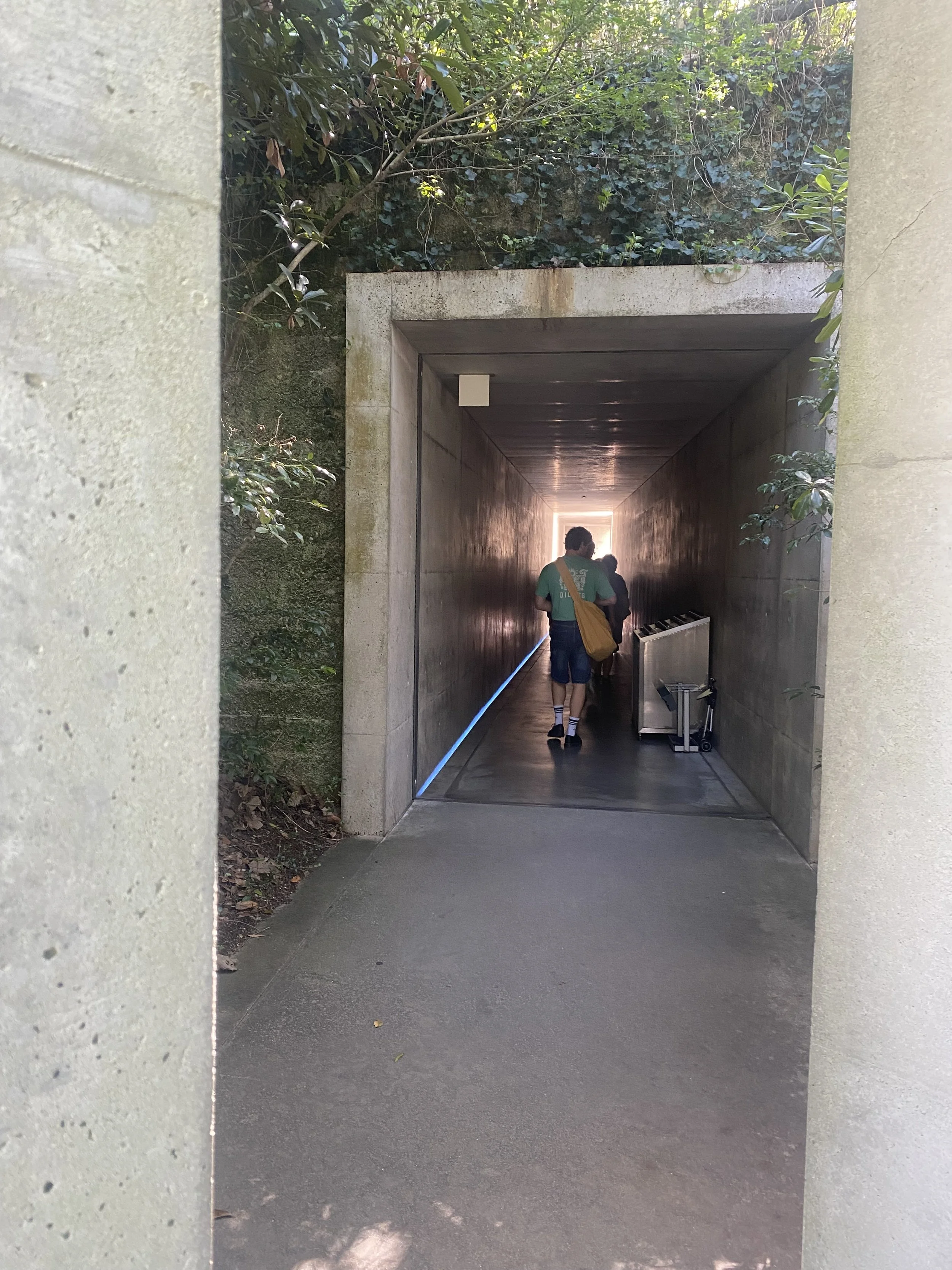Immediately you enter into a surreal new world where your senses are messed with at every turn and with every new space. It’s dark and slightly claustrophobic in the first corridor with only a small strip of light at either side of the path. The clattering noise from steps on concrete and people’s voices echoes off the hard surfaces as the corridor narrows slightly to emphasize the length.