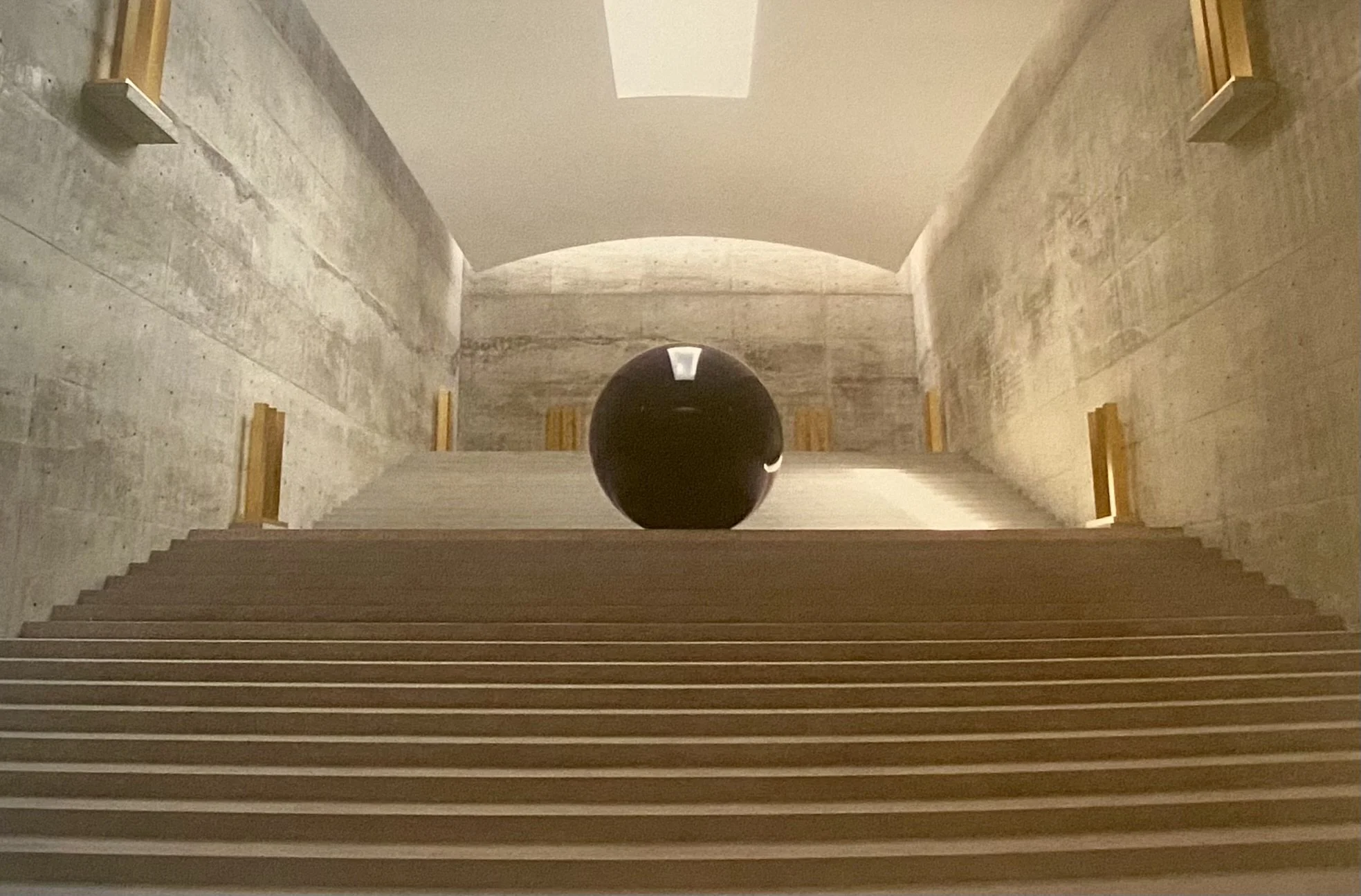 Next we descend further into the heart of the mountain and enter a vast chamber where Walter de Maria’s piece ‘Time / Timeless / No Time’ consists of steep processional step rising past a huge onyx orb in the centre whose reflection distort the space and people as they walk by. The play on the mind of nature space and art are at their best here and we are left with a humility of the small part that we each play.